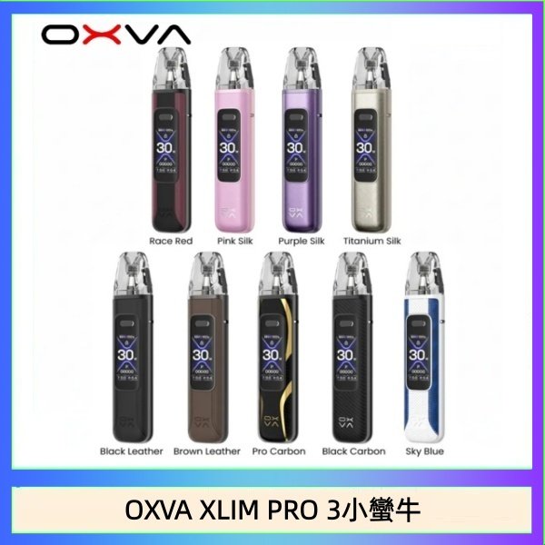 OXVA XLIM PRO 3 是一款升級版可重複填充煙彈(Pod System)主機,主要升級包含更大的 1500mAh 電池、更快的 2A Type-C 充電、1.05 吋 HD 螢幕及 RGB 燈效,提供 5-30W 可調功率,支援自動吸氣/按鍵啟動,並相容多種 XLIM 煙彈,提供 MTL 和 RDL 兩種吸阻,是 XLIM Pro 的強化版。